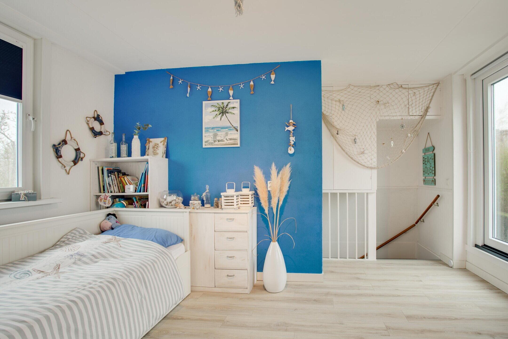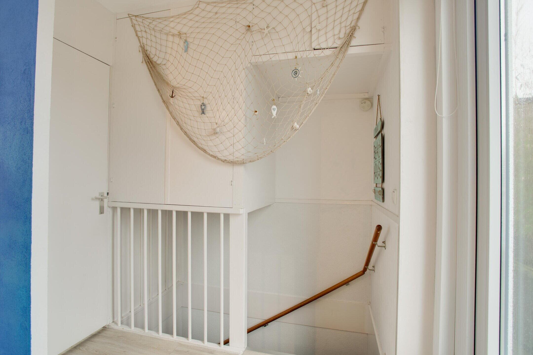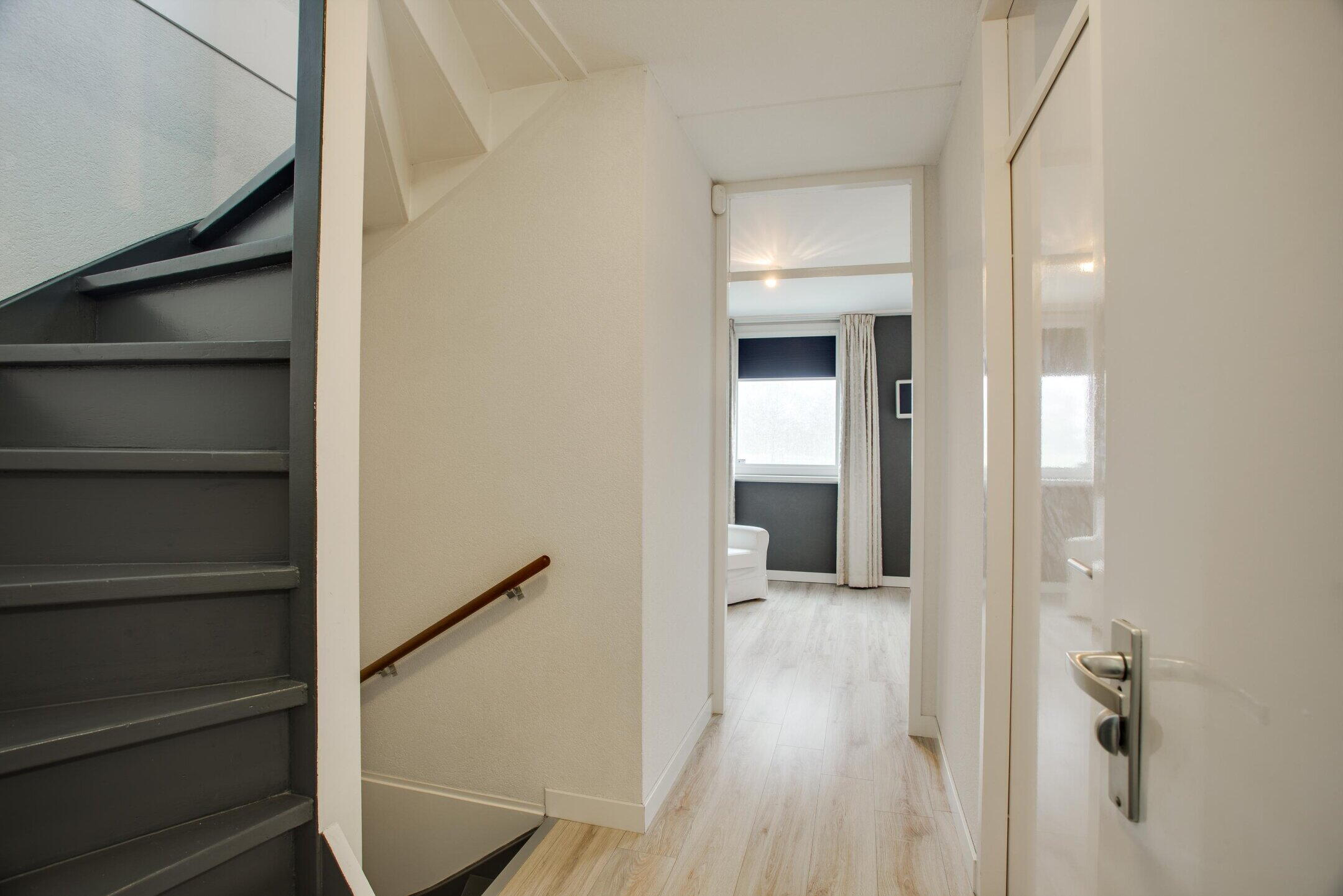 De overloop op de eerste etage geeft toegang tot twee volwaardige slaapkamers en de badkamer.