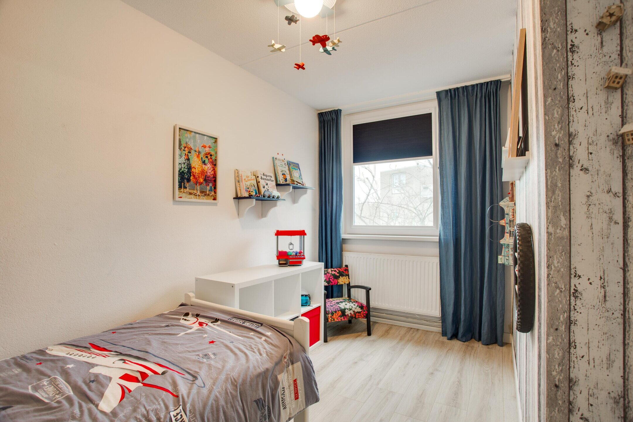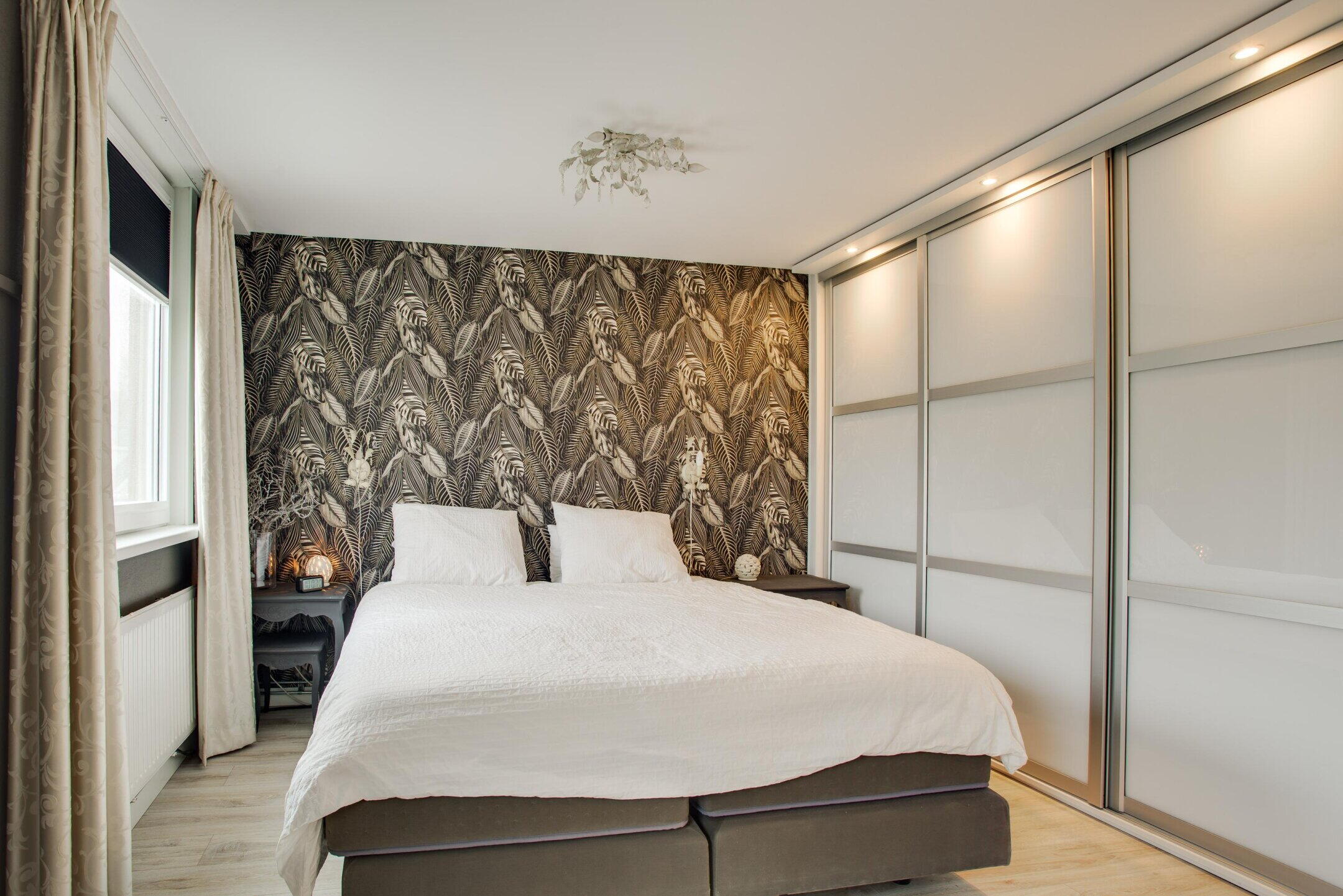 Aan de achterzijde bevindt zich een ruime slaapkamer over de breedte (voorheen 2 kamers), voorzien van een praktische inbouwkast. De tweede slaapkamer is eveneens goed van formaat en naar eigen wens in te richten, bijvoorbeeld als slaap-, werk- of logeerkamer.