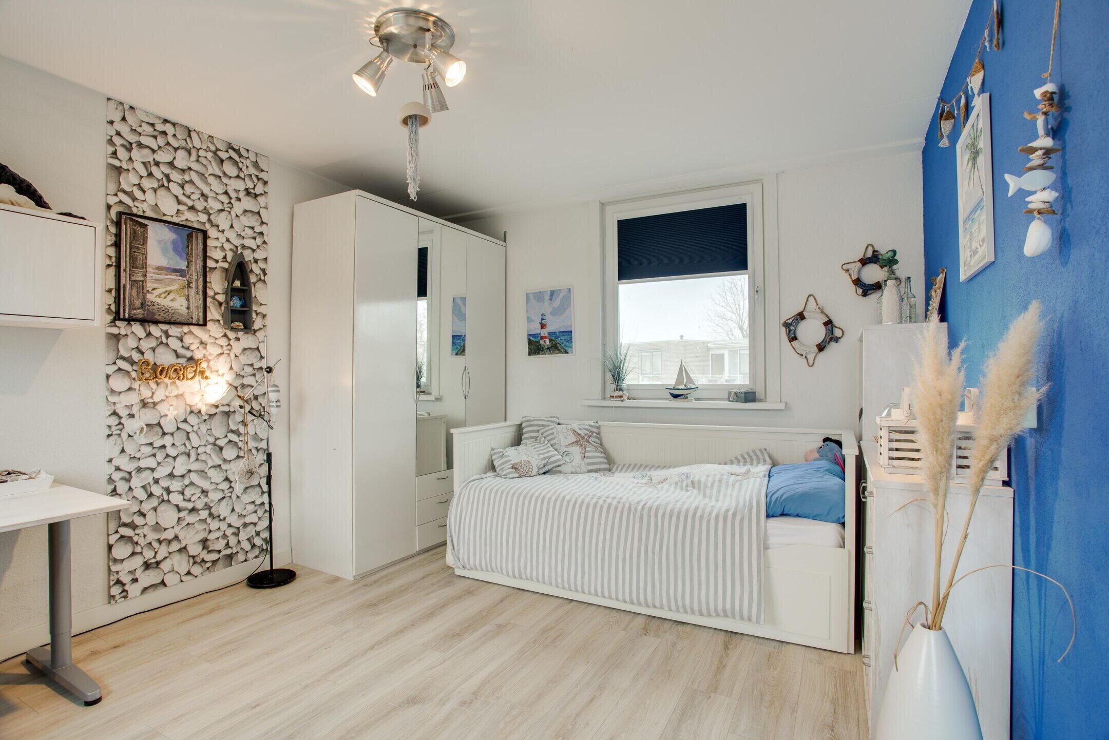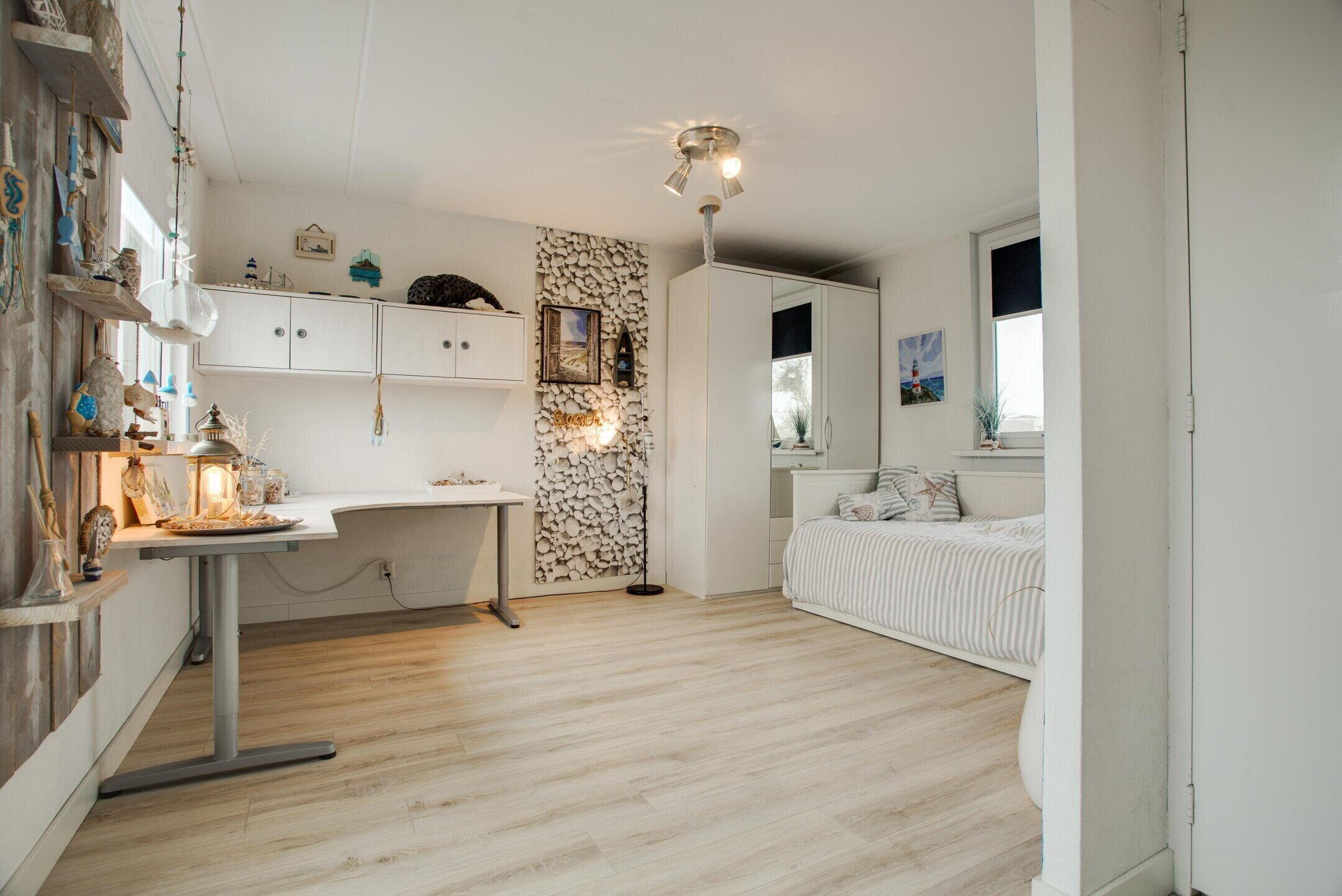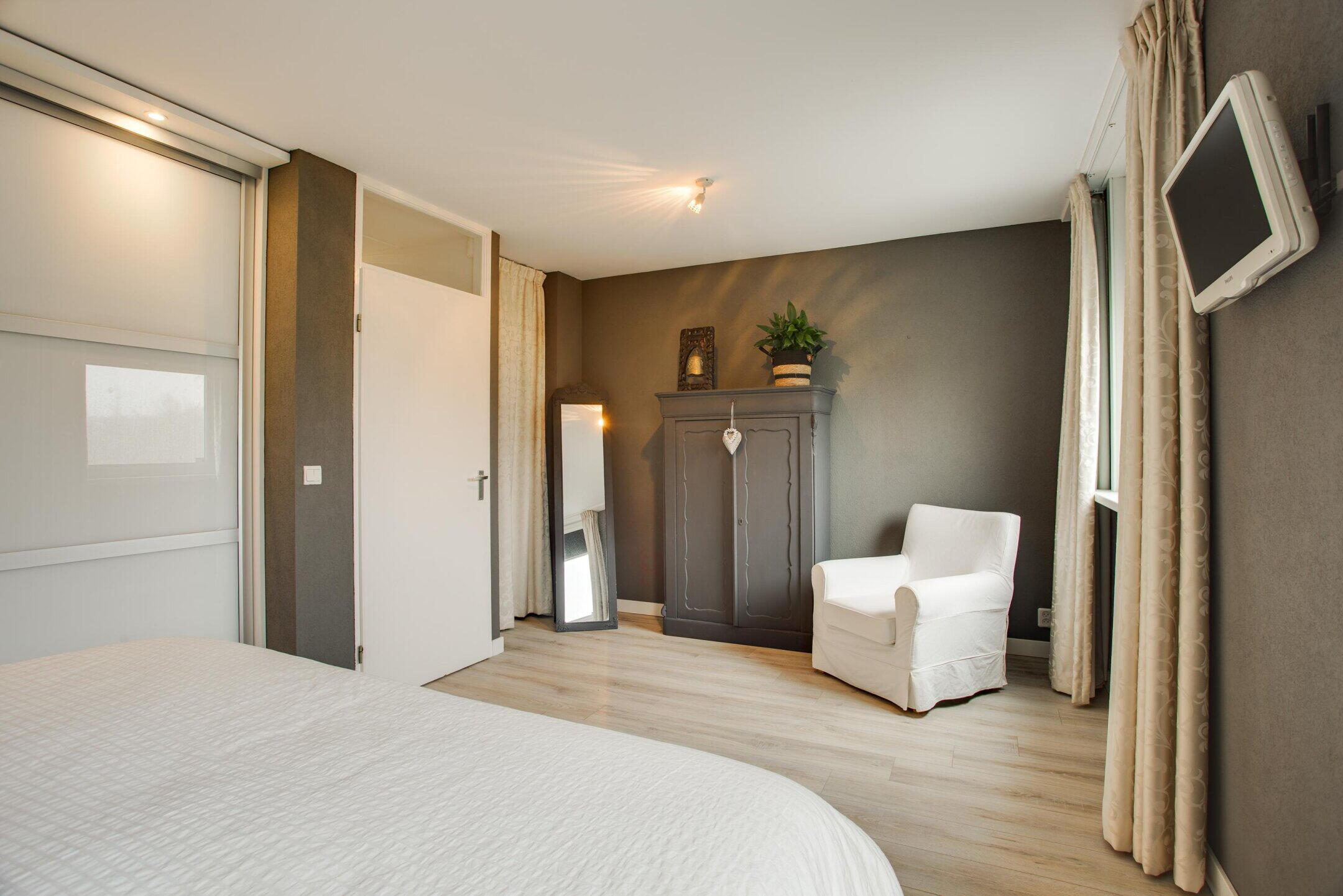 Op deze verdieping bevindt zich een ruime slaapkamer, die prettig in te richten is en direct toegang biedt tot het dakterras.