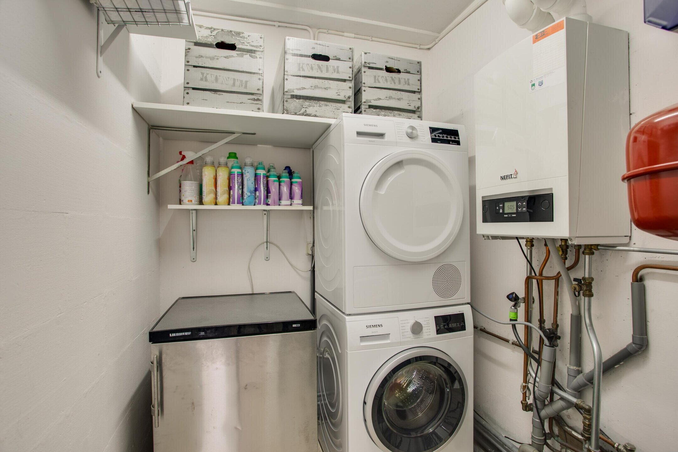 Daarnaast is er een aparte wasruimte aanwezig met aansluitingen voor wasmachine en droger, tevens ook de opstelplaats voor de CV-ketel.